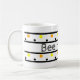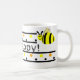 Bee Happy está escrito en una fuente divertida. Una sonriente burbuja de rayas negras pintada a mano y con las alas que revolotean está zumbando para decir hola. Formas geométricas coloridas con rayas negras y puntos de polka amarillo naranja sobre fondo blanco. Pandillas brillantes y alegres. Diseño original de obras de arte © TamiraZDesigns. www.zazzle.com/tamirazdesigns
