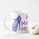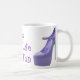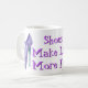 Una taza de café femenina del lema de la diversión para las mujeres que aman los zapatos. Púrpura y versión de la lavanda.