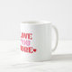 Featuring bold retro typography in soft pink and red tones, this minimalist love quote mug is perfect for couples, Valentine’s Day, anniversaries, or simply sharing a little extra love with your favorite person.