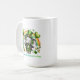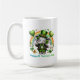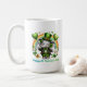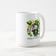 An adorable elephant dressed in green, holding heart balloons and surrounded by shamrocks and a rainbow- symbol of happiness, luck, and positivity.