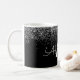 Taza de café de lujo plateada y negra con brillo Glitter Monograma Nombre e Inicial. La taza es el regalo perfecto para alguien que ama el lujo chic femenino con estilo.