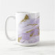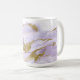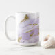 Este diseño a medida, con una tinta de alcohol abstracta en tonos de lavanda suave a violeta lila con acentos dorados brillantes, es perfecto para una boda romántica y elegante. El diseño coordinado de tazas de café que se muestra aquí proporciona una plantilla para añadir fácilmente sus iniciales y fecha de boda. Buscar ID990 para ver otras piezas en este conjunto de bodas coordinado.