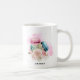 Una taza con una imagen deliciosa. 3 macarones coloridos, rosa, verde y azul con un elegante ramo de flores de rosa y un toque de color rosa de las acuarelas. ¡Delicioso y elegante también!