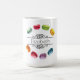 Una taza con un diseño de acuarela elegante de macarons dulces y deliciosos en forma circular. En el centro hay un marco decorativo que dice tu nombre. El texto puede ser personalizado con su nombre, nombre comercial o lo que quiera. Los macarones están pintados con colores agradables como rosa, azul, verde limón, amarillo soleado, rojo, violeta, etc.