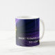 Elegante y moderno tazón de café con una original foto macro de una hermosa flor morada y amarilla de pansy. La cita inspiradora en blanco y amarillo dice "Donde las flores florecen, también la esperanza".