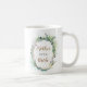 Una taza de bonito para darle a tu madre el día de tu boda, que la traerá de vuelta encantadores recuerdos mientras bebe su cuppa matutino después de la ocasión. La Madre de la Novia está en una tipografía de escritura rodeada por un diseño de hoja de oliva acuarela de bonito en un marco geométrico. Por otro lado está el nombre de mamá. Todo el texto se puede personalizar fácilmente y también puede cambiar los colores del texto si lo desea a través de la opción Click to Personalizar Further (Hacer clic en más ).