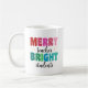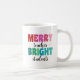 Difunde la alegría navideña con esta taza de vacaciones personalizable que presenta tipografía colorida que dice, “Maestro alegre, estudiantes brillantes” en vibrantes tonos de rojo, rosa, verde y azul. Las estrellas de acento simples añaden un toque de fantasía al diseño, y la mejor parte es que puedes personalizar las dos áreas de texto para hacer que este diseño sea único. Cambia la profesión y el texto adicional en la parte inferior del diseño para crear un regalo de agradecimiento de Navidad único para un maestro u otro profesional en tu lista de regalos navideños.