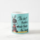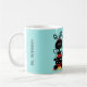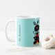 El tazón de un profesor de la escuela de diversión hecho en turquesa con adorables gráficos de una mariquita negra y roja parada en un lápiz. Texto gráfico negro que dice: Los mejores profesores enseñan desde el corazón. Personalice el texto negro personalizado, en el lateral, para que se ajuste a sus necesidades.