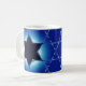 Una simple imagen fractal de color azul de múltiples instancias de un Magen David (Estrella de David) formado por líneas entrecruzadas de vidrio o cristal, la estrella central está llena de azul oscuro. Personalizar añadiendo su propio texto en el reverso.