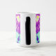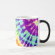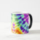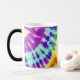 Un patrón colorido de tie dye en una taza de café mágica que cambia. La taza es sensible al calor y cambiará de color con líquidos calientes.