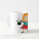 Una chica joven vestida como mago está sosteniendo un sombrero de copa con un conejo en él. Modifique este producto para requisitos particulares con un nombre o un mensaje para hacerlo verdaderamente único