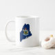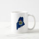 Aquí hay una taza de café con un contorno de estado de Maine dibujado a mano con la bandera del estado dentro. Perfecto para el Mainer que quiere mostrar su orgullo por su estado.