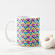 Esta taza tiene un diseño Bauhaus de repetición de triángulos en oro, turquesa, verde azulada, morada y oro ligero. Si te gusta el diseño pero prefieres colores diferentes, envíame un mensaje.
