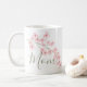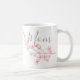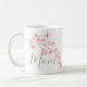 Flores de color rosa delgado, floral primaveral para el día de la madre o cualquier ocasión. Palabra de guión manual para mamá en ambos lados de la taza. Añadir o cambiar texto según sea necesario.