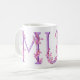 Orquídeas tipográficas alrededor de las letras MAMÁ barro de arte. orquídea rosa brillante bonito acuarela arte letra púrpura. Ideal para regalar a mamá en el día de la madre, un cumpleaños especial u otra ocasión especial. © Arte y diseño de las acuarelas originales de Sarah Trett. www.sarahtrett.com para www.mylittleeden.com