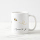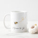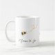 Esta taza de café está decorada con abejas color agua y "Mama to Bee" en una tipografía de escritura elegante. Personalizable fácil con su monograma. Hace un lindo regalo para la futura madre. Acuarela original © Michele Davies.