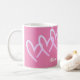 Una taza de café de mamá rosa de corazón triple. Este es un dulce regalo de día de San Valentín para todas las mamás amorosas. Editar texto para cambiar el nombre o editar el color del fondo. Bebe con amor en mente.