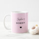 Este sencillo y dulce tazón rosa para la nueva madre presenta elegante texto negro y escritura, con un corazón lindo y el nombre de su hijo, además de la palabra "mami". Un recuerdo maravilloso de su primer año como madre nueva.