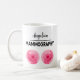 This black typography coffee mug pairs a name, MAMMOGRAPHY, with an abstract two-circle design that represents breast anatomy. Personalized for a mammo technologist, it works well as a thank you or appreciation gift from coworkers, friends, or family.