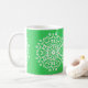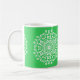 Esta mandala blanca se asienta sobre un fondo verde de primavera brillante. Los colores son enérgicos y luminosos. Parte de la colección Mola Mandala.