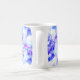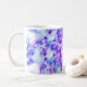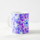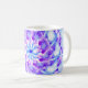 Esta taza presenta un diseño luminoso abstracto de color púrpura floral, lila y magenta mandala. Los colores giran alrededor de una estrella azul central.
