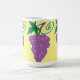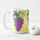 El poner en contraste hermoso amarillo claro y púrpura. Con puntos culminantes verde oscuro. Un manojo de uvas púrpuras en una vid. Grandes regalos para el tema natural de los amantes del vino, púrpura y amarillo. ¡Vea más de nuestra línea ilustrada de la fruta en nuestra tienda!