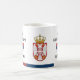 Copa de café/té con gracioso texto de "Mantengan la calma" para patriotas serbios con bandera serbia y escudo de armas de Serbia - amo a mi país, adorables regalos, patriotas / hinchas deportivos