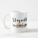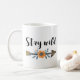 Manténgase en forma salvaje, como el tazón color agua con flechas, diseño floral acuático y línea de texto en caligrafía moderna.