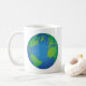Una visión gráfica de la Tierra sobre el Océano Atlántico como un mapa azul y verde que muestra los principales continentes de las Américas, Europa y África. Puede realizar personalizares cambiando el color de fondo o agregando su propio texto.