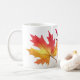 Una pintura acuarela de varias hojas otoñales de diferentes formas y colores, incluyendo rojo, naranja, amarillo y verde. Las hojas tienen texturas detalladas, algunas de ellas son arce, roble y otras hojas de otoño comunes. El fondo es transparente y el estilo general es delicado y artístico, con brochas suaves y tonos cálidos que representan la temporada de otoño.