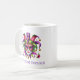 This ceramic coffee mug is shown with Mardi Gras images, Text of "Let the good times roll' is beneath the prints.