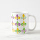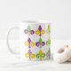 Esta taza tiene un diseño de Mardi Gras de fleur de lis alineado al otro lado del diseño con diferentes diseños.