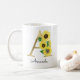 Monograma con letras doradas y girasoles en taza inicial, regalo perfecto de Navidad o cumpleaños para una hija, mamá, tía o hermana. Personalizado con el monograma de la letra A y un nombre. Otras letras disponibles en mi tienda.