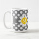 ¡Usted amará este diseño lindo, floral, gris oscuro del modelo de lunares! La flor blanca y amarilla de la margarita añade un tema moderno de la primavera. ¡Visite nuestra tienda, boda de moda, para ver este modelo fresco en muchos más grandes productos adaptables, incluyendo los regalos femeninos del monograma, ahorran las postales de la fecha y saltan las invitaciones temáticas del boda! ¡Gracias!
