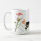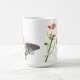 Fotografía de bonito de una mariposa alimentándose de algas de leche. Delicado diseño de tazas de café blancas