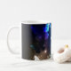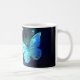 Fabuloso, brillante, azul y amarillo, mariposa nocturna sobre fondo oscuro.