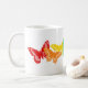 Este bonito y colorido diseño tiene una hilera de mariposas color arcoiris.