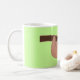 Este diseño caprichoso de una mancha sonriente marrón con la nariz del corazón colgando de un árbol te hace soñar con un ritmo más lento, disfrutando del momento y de lugares tropicales. El dibujo de la línea marrón se coloca sobre un fondo verde claro en esta taza de café, pero este color o cualquier texto puede personalizarse fácilmente. El diseño funciona bien para los adultos, pero también para los niños y sería perfecto para un niño o un chica.