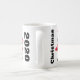 Un año como 2020 será recordado para siempre. Como un pequeño recordatorio de que la pandemia no va muy lejos durante las vacaciones, hasta Santa está usando su mascarilla. Con esta taza de Navidad siempre tendrás tu pequeña memoria del año de la máscara facial. El diseño incluye un Santa personalizado en el traje tradicional de Santa Claus. Santa está usando su máscara protectora con un feo patrón de suéter para Navidades. A cada lado del Santa en una máscara facial está el texto que dice Navidades 2020 en negrita y negro.