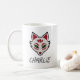 Esta divertida taza presenta una espeluznante máscara de zorro blanco y rojo kitsune con brillantes ojos verdes. Su propio nombre está impreso directamente en la taza... escriba su nombre o mensaje corto en el cuadro de arriba y vea la actualización de la imagen de previsualización!
