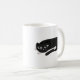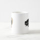 Ilustracion de un gato negro mirando a través de un corazón amoroso, Al otro lado el gato está tumbado. Este diseño utiliza áreas de producción, por lo que si desea cambiar el color de fondo blanco, también tendrá que cambiar los dos cuadrados bajo las garras de gatos.