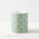 Add a little cheer to your day with a whimsical, hand-painted watercolor floral patterned mug featuring playful blue, orange and yellow daisy blooms dancing on a mint green background.