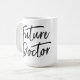 Esta taza ofrece la frase "médico futuro." en un negro, tipografía "manuscrita" moderna. Esto fue diseñada como taza derecha, no obstante el diseño se puede mover fácilmente al otro lado de la taza que lo transforma en una taza zurda simplemente y fácilmente usando el personalizar él herramienta.