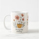 Bring a touch of elegance and humor to your daily routine with this minimalist coffee mug. Featuring an abstract floral background in soft muted tones of off‑white, dusty rose, and gentle grey, the design is airy and feminine with clean line art flowers.