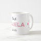 ¡Una taza linda para la mejor abuela de todos los tiempos! "Mejor Abuela de la Historia" está escrito en la parte delantera de la taza, con "ABUELA" escrito en letras a bloque compuestas de corazones rosados. A los lados de la taza, se puede personalizar con los nombres de los nietos bajo un corazón rosado coordinado.