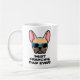 Esta taza de café de bulldog francesa es el regalo perfecto del Día del Padre para cualquier padre francés. El diseño presenta un ilustracion al estilo personalizado de un bulldog francés de color claro y con gafas de sol con la frase "¡El mejor papá francés de todos los tiempos!" El diseño es el mismo en ambos lados de la taza y la redacción puede cambiarse a lo que quieras.