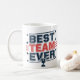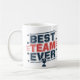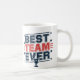 Esta imagen presenta un gráfico motivacional con la frase "MEJOR EQUIPO DE LA HISTORIA" de forma destacada. Las palabras "BEST" y "EVER" están en negrita, azul oscuro, mientras que "TEAM" se resalta en letras rojas en negrita. El diseño incluye elementos decorativos como estrellas y líneas horizontales en rojo, que le dan un toque de celebración.