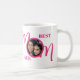 Este lindo café de la mejor mamá de todos los tiempos está decorado con la palabra mamá de elegante rosa sobre un fondo blanco. Personalizable fácil con tu foto. Hace un regalo perfecto para el Día de la Madre.