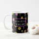 Taza de hermana mayor con el texto personalizable Mejor hermana mayor del mundo y un diseño floral oscuro y femenino creado a partir de flores abstractas dibujadas digitalmente con formas redondas en amarillo y rosa. Este diseño floral decorativo atraerá a las mujeres amantes de las plantas.