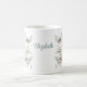 Hermosas flores y mariposas verde azuladas rosas y livianas rodean el texto de la "Mejor Mamá de la Historia" en esta divertida taza de café. Un regalo perfecto para los Navidades, el Día de la Madre o el cumpleaños de tu madre. Se puede cambiar el nombre. Gráfico asistido por IA adquirido con uso comercial. Obra de arte: ArtesaníasOasisArt